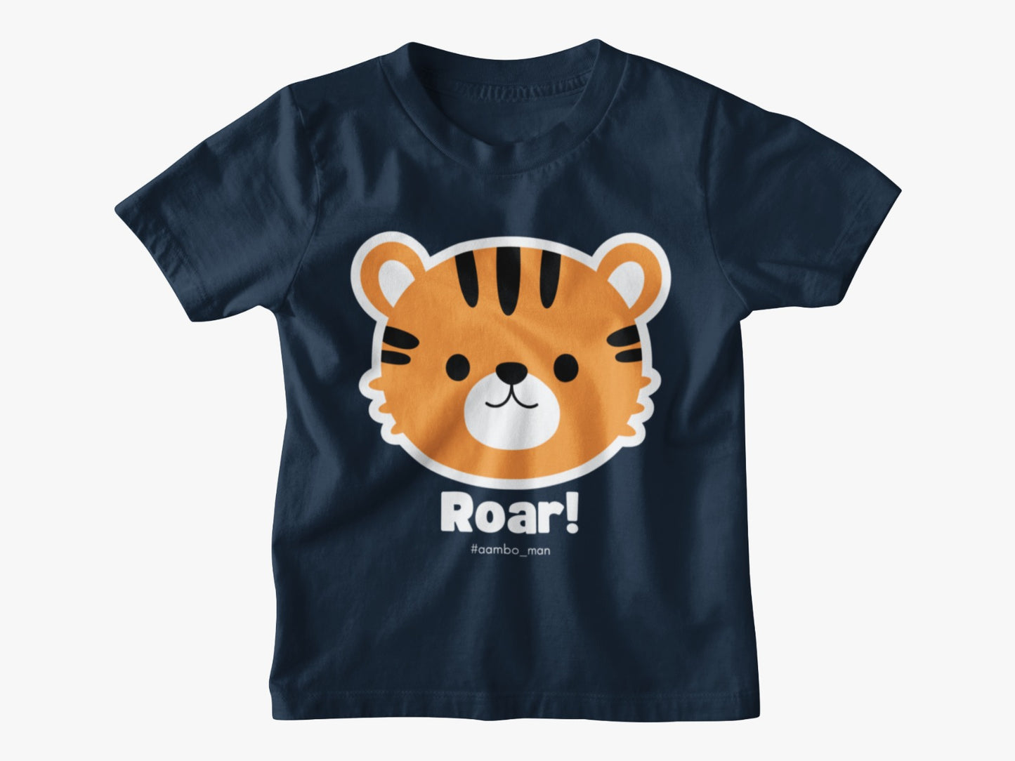 Let your little tiger make a bold statement with our Aambo Man's "Roar" kids’ t-shirt, featuring a funny and adorable tiger face design with the playful text "Roar." Made from 100% pure cotton, this tee is designed for comfort and style, perfect for your energetic, adventurous child..