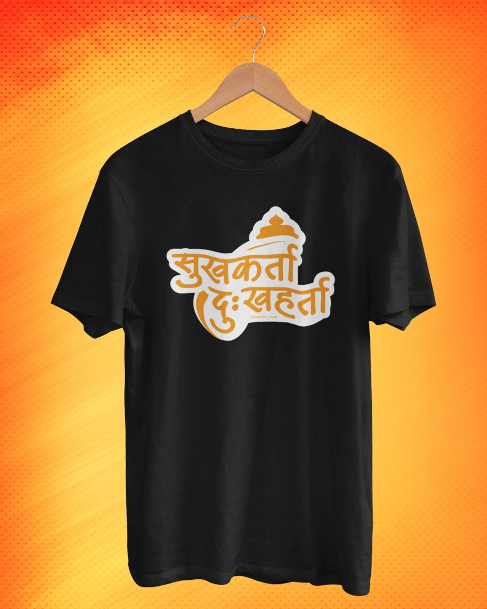 This t-shirt is more than just festive wear – it’s an emotion, a prayer, a connection to tradition. Whether you’re attending the morning aarti or capturing memories on visarjan day, let “Sukhakarta Dukhaharta” reflect on your heart — and your chest.